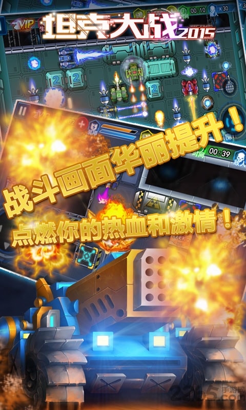 《坦克大战2015》,史诗级热血坦克战争大作,精准完美的操作,不一样的绚丽动感游戏场景,巨型BOSS等待你的讨伐,战斗场面华丽升级,尽情地点燃您内心的热血吧!