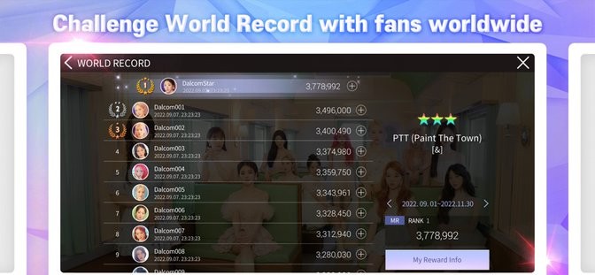 想知道自己在全球玩家中的实力如何?在SuperStar LOONA,你可以实时观看全球玩家排名,挑战最强粉丝,争夺高分荣誉。