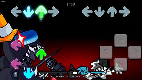 4、左下角的方向键是打击按键,进入音乐对局,方向键头会逐渐从屏幕下方升到屏幕上方,在下方的箭头与上方固定的箭头重合时,玩家需要按下对应下屏幕上的方向键,才能得分。