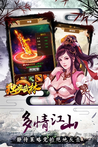 《独步武林》细腻古风的游戏,精妙的游戏画面完美再现了一个恩怨武林,让你瞬间梦回江湖!游戏内江湖争斗日益激烈,赶紧加入一统大业吧!几十名传奇江湖豪杰与你作伴,华山论剑、门派试练、刺探、运镖、除暴等新鲜的玩法等你来战!