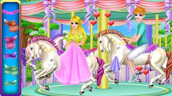 休闲益智约会小游戏,专为小女生设计的约会穿搭和场景,孩子扮演的角色需要通过打电话给公主的朋友,让他们和公主一起约会,约她的朋友一起出来去游乐场玩耍,帮助游乐场修理好旋转木马,让公主快乐的玩耍,并让他们一起吃一个美味的午餐,让公主度过一个充实而快乐的一天。