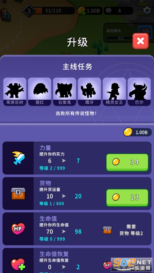 提升角色的力量,货物,生命值,生命值恢复等属性