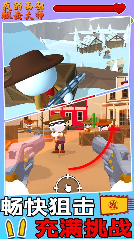 我的西部狙击大神手机版是一个西部牛仔背景的射击游戏,游戏画风非常的可爱,大家可以选择喜欢的人物在游戏中进行战斗,拿起你的武器枪支来探索这个世界吧,西部地图更有风情,大家可以在这里寻找更多的武器,干掉这里所有的人,获得最后的胜利。