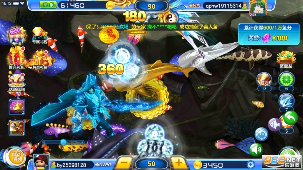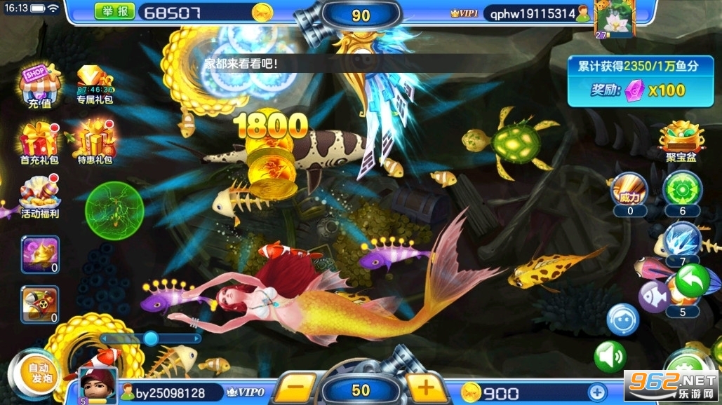 真人对战捕鱼游戏中,偶尔会有海盗船长拖着装得满满的宝箱出场,当然你可以打劫他而且你可以捕获,几乎所有你能想象得到的海洋生物,包括稀有海底生物美人鱼,这里都有!