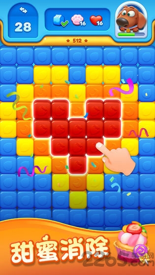 点击至少两个相邻同色糖块来消除它们,完成目标,通过关卡!消除多个同色糖块,还可以得到强力道具,帮你轻松过关!比消消乐更易玩,却更有挑战性!好好消除,天天向上,我们的甜品店就正式交给你啦!