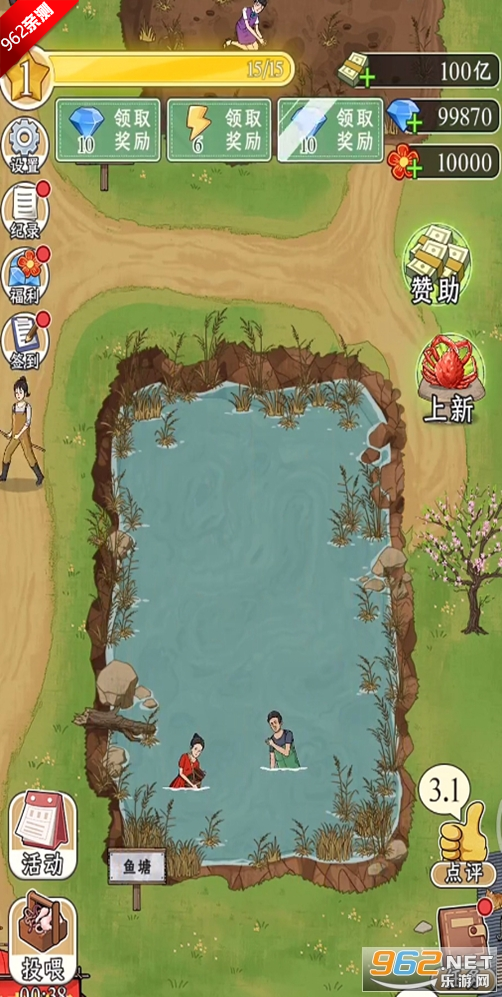 1、进入游戏后角色会自动进入鱼塘抓鱼,点击角色头上的气泡可以提前获取收益。