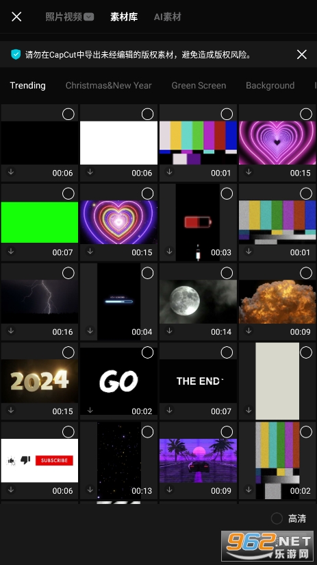 选择素材库或者AI素材