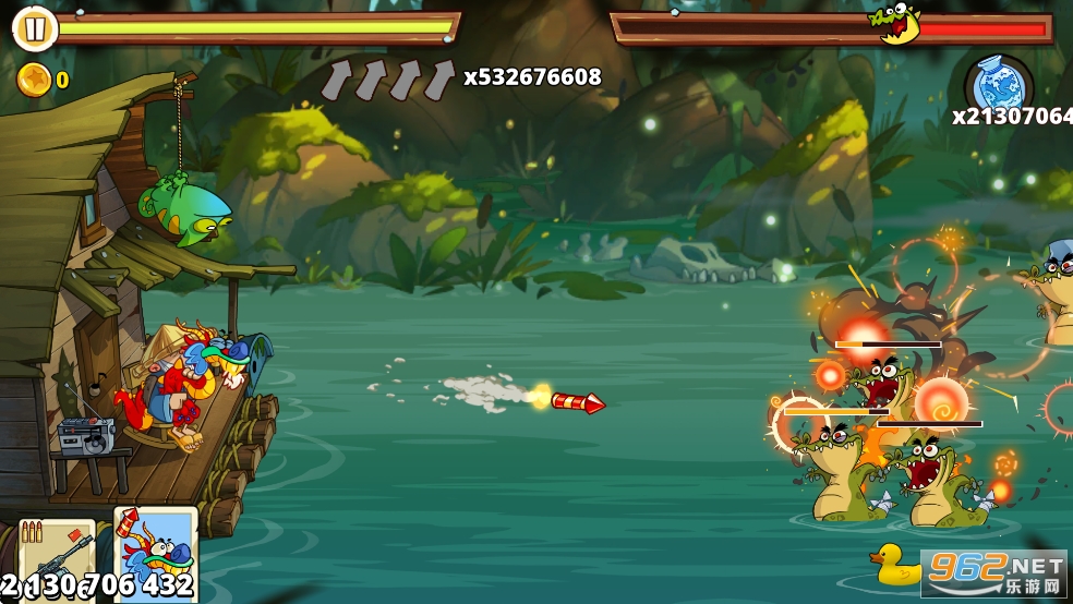 变异的鳄鱼、狂暴的老鼠和灰熊鳄鱼正与“慢乔”展开全面交锋!这是一场争夺沼泽的全面战斗。它们正直奔小屋而来,您需要在这款史诗级塔防射击游戏中,使用大量的枪支、炸弹和火箭弹来阻止它们。