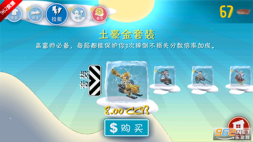 滑板:双击屏幕即可激活,在有效时间内拥有两条生命。游戏中还有多种特殊滑板,如Chicky需收集100只复活蛋以解锁,Daredevil可以跑得比平常快等。