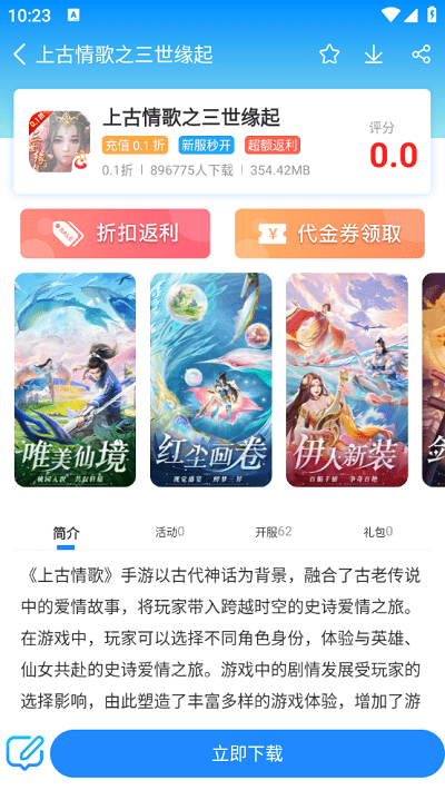 蚂蚁智游app是一款手机游戏盒子软件,在平台上面有着非常多的游戏资源可以供用户们来进行下载畅玩,在这里游戏介绍十分的详细,还有很多的配图可以查看,游戏分类很详细,查找起来也是很方便的,还有很多的福利礼包可以领取,感兴趣的朋友们快来下载体验吧!