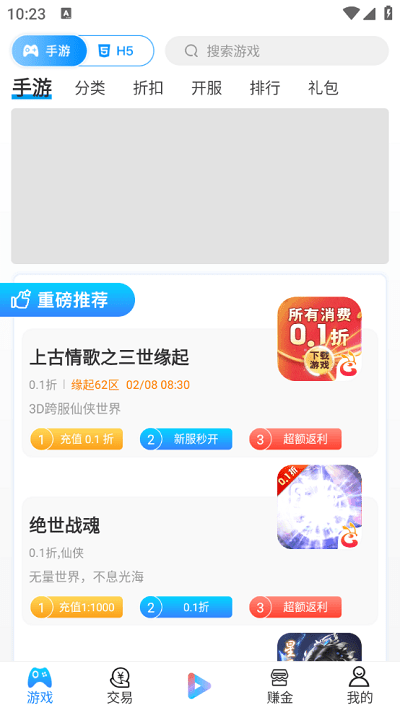 3、打造折扣手游盒子,汇聚了各大热门的游戏资源,畅玩不停。