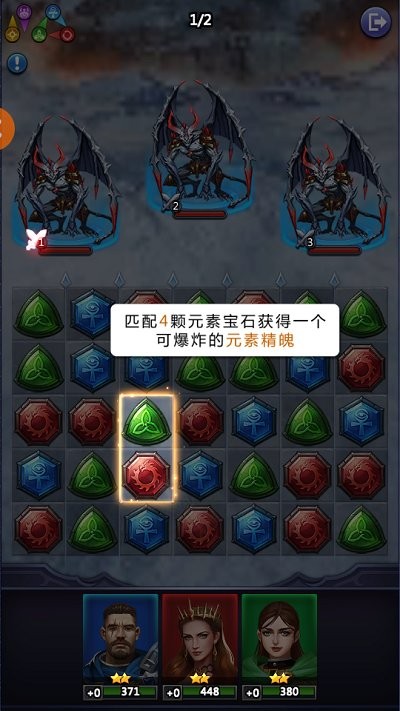-穿越魔法之门,用三消魔法击败大陆上邪恶怪物,可获得灵魂石和强化装备,用于培养和强化英雄!