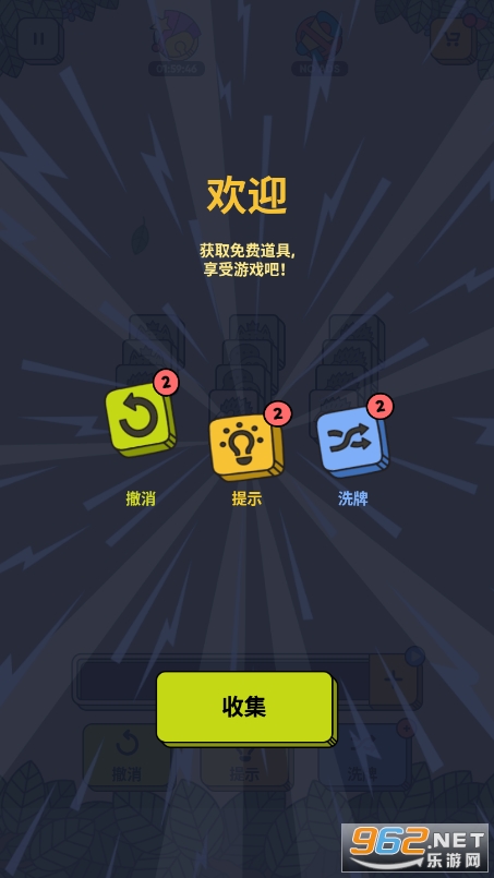 1、首先,你需要把3个方块有相同图案的方块配对。你可以点击它们并将它们堆叠成摞。3个相同的方块会被配成一组,并被从堆积的方块中移除。