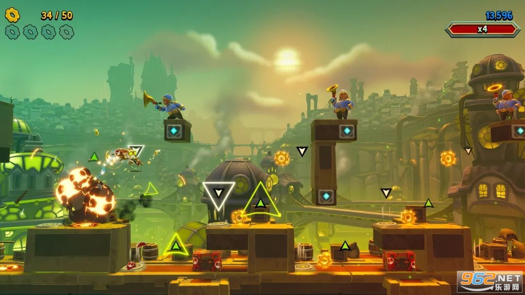 踩着音乐节拍,借助炸弹、跳跃和击打避开障碍,解除敌人武装,点燃导火索制造大型混乱场面。