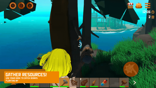 在海洋中获取资源很困难:玩家需要确保用可靠的抓钩抓住任何漂浮的碎片,如果可能的话,清除海浪下方的珊瑚礁和上方的岛屿。