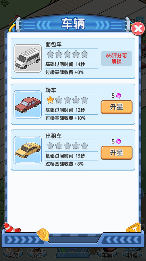 5、升级来往的车辆,增加桥梁的收益。