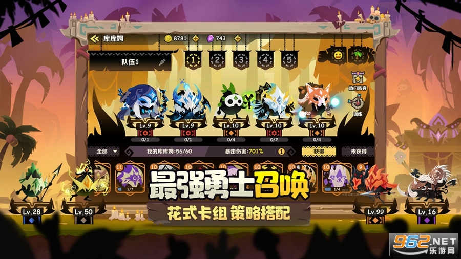 数十个拥有特异能力的库库姆,等待你的征召!他们掌握史前神力,可以召唤野猪、占星算术、召唤闪电,还可熟练使用吹箭、飞刀、长矛等各种冷兵器克敌制胜!部落勇士严阵以待,等待着你的到来!