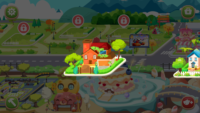 小镇的每个角落都隐藏着可交互的惊喜:点击路边的小花会引来蝴蝶飞舞,修理坏掉的玩具车需要按步骤拧紧螺丝,甚至天气也会随时间变化(白天阳光明媚,夜晚点亮路灯)。这种一触即发的反馈机制,让孩子在探索中持续获得成就感,培养观察力与动手能力。