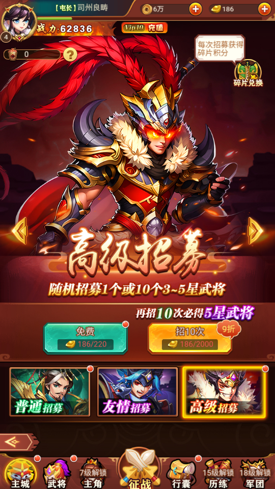 3、有了资源就能点击首页的点将,招募强力武将,提高战斗力