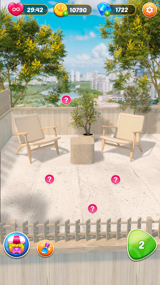 1、玩家需要通过消除关卡来赚取金币和星星,并用这些钱来装饰自己的花园和房屋。