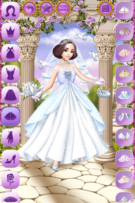 明天灰姑娘会就要和迷人王子结婚了!皇家裁缝为婚礼上最漂亮的女孩制作了最漂亮的婚纱。你是一位魔法精灵,你的任务是给她穿上最优雅,最夺人眼球的衣服!