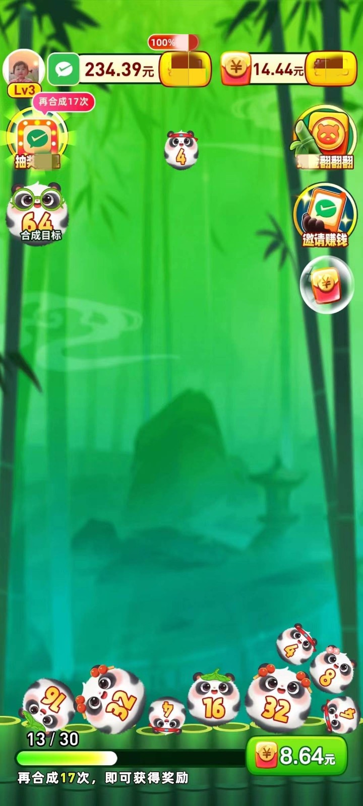 一款2048熊猫合成游戏。发发熊猫赚钱版游戏中玩家可以在这里不断合成,相同数字就可以合成,合成到2048就可以得到丰厚奖励。红包奖励丰富,门槛低,提现没有限制,更多奖励拿到手软,更多的模式挑战等着你。
