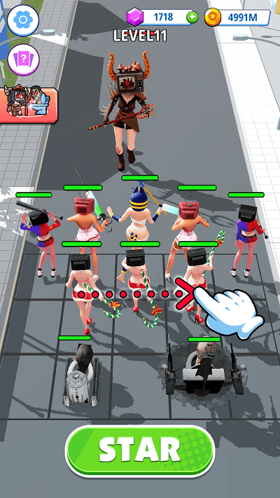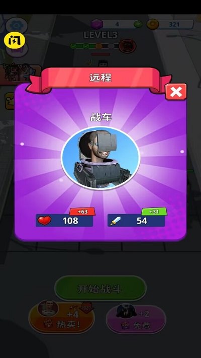 2、通过合并厕所泰坦、女摄像人和女电视人,创建你独一无二的战队。不同角色有着独特的特性和技能,你需要巧妙搭配他们,制定最佳的战略。