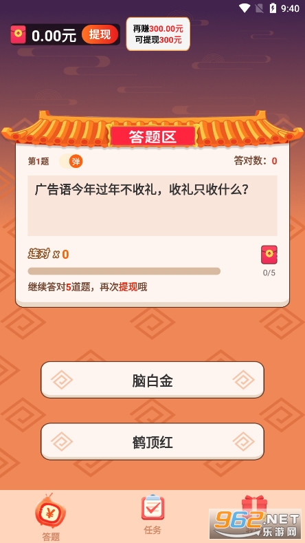 答题需要答题卡,每张答题卡答1道题,答对奖励红包,答错没有。