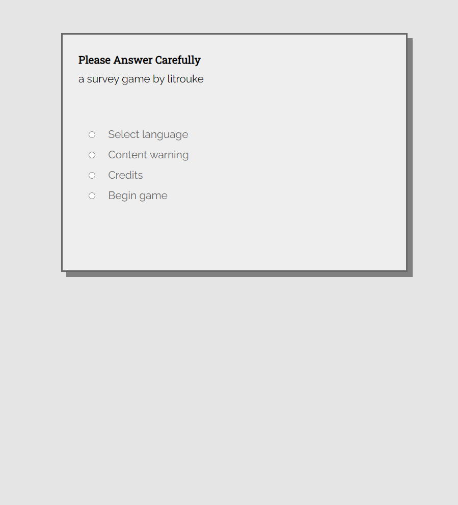 《please answer carefully》以其独特的惊悚氛围和高度互动性赢得了玩家的广泛好评。游戏中,玩家不仅需要运用智慧解开复杂的谜题,还要在女鬼的监控下保持冷静,小心翼翼地前行。女鬼的智能化设计更是让游戏充满了不可预测性,每次游玩都能带来全新的体验。游戏成功地将解谜与惊悚元素融合,为玩家带来了一场惊心动魄的冒险之旅。