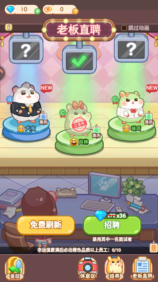 3、还有员工可以招聘,以及一些小游戏可以体验