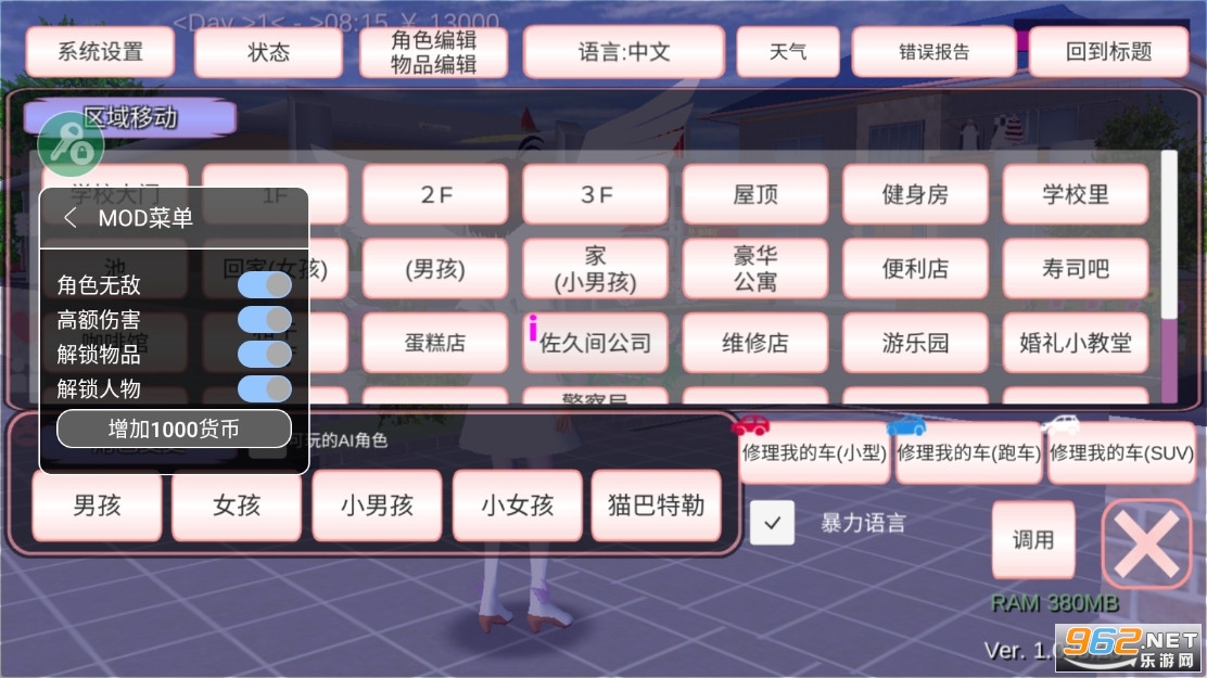 《樱花校园模拟器》(SAKURA School Simulator)是一款二次元风格的模拟手游,游戏已校园为题材,玩家将前往校园的各个场景去冒险,比如宿舍、体育馆、教室等等,可以奔跑、飞行、跪坐,做各种允许的动作,而且还可以解锁汽车去飙车,解锁各种物品去装饰等等。