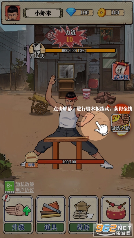 《劈砖大师》魔性劈砖休闲小游戏,劈砖大师怎么打败牛头人点击劈砖,积累经验,挑战不同的对手,一步一步积累成为手法娴熟的劈砖大神