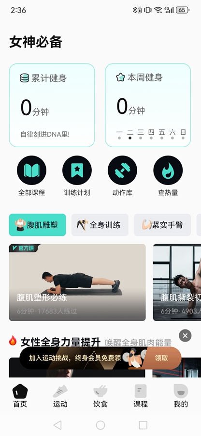 包含凯格尔运动、全身训练、HIIT训练、瑜伽、舞蹈练习、增肌训练、热身、放松拉伸等专项训练。