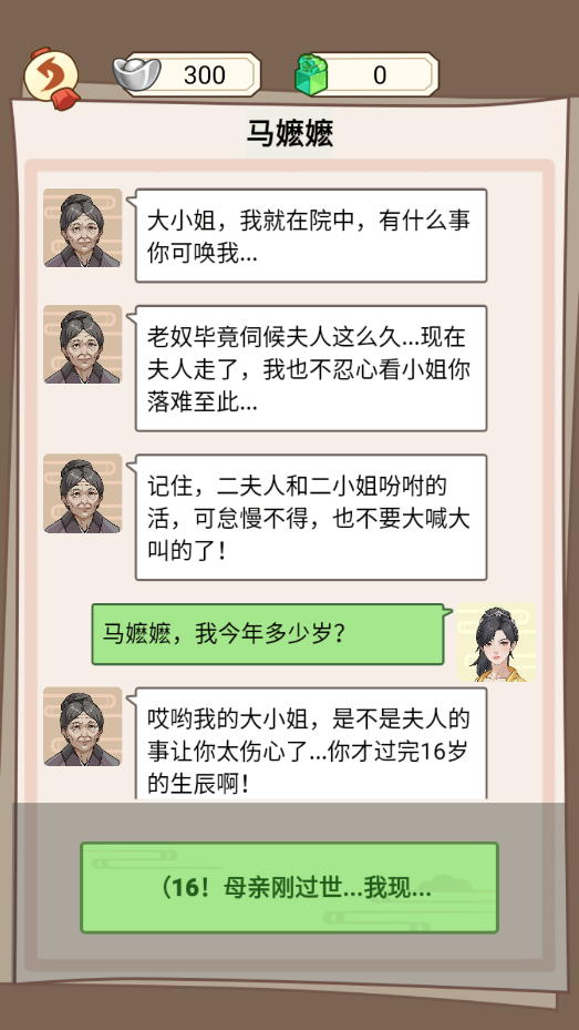 在后院中点击嬷嬷上方的小姐请开药,赚元宝