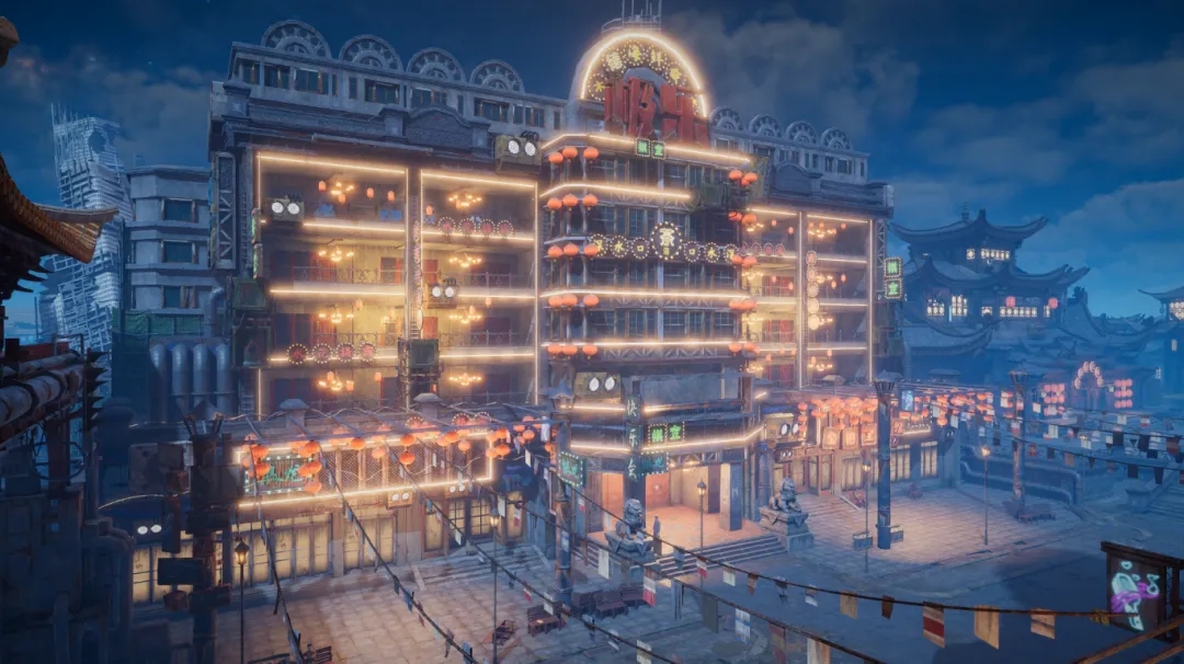 国风建筑与各种带有锈迹的破损金属、铁网、管道交错搭配,魔幻现实主义感在此地拉满!
