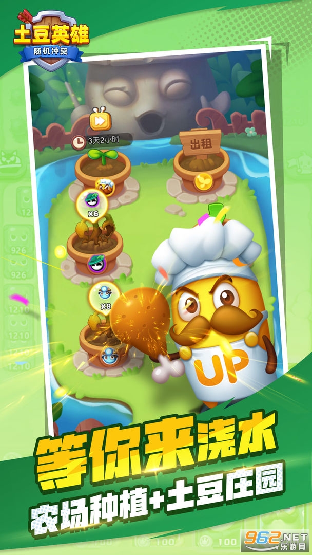 《随机冲突土豆英雄》是一款随机合成PVP对战塔防小游戏,游戏包含1V1对战,BOSS消除,合成卡牌及塔防守护等多种游戏要素!与传统塔防类游戏不一样之处,这款游戏独特亮点就是随机玩法,玩家可以自由搭配卡组派出五位英雄出战,双方各自占据一片场地,玩家在战斗中使用银币召唤或者升级英雄,双方各自拥有三点生命值,不同怪物突破防线生命值将扣除对应的生命值点数,生命值归零则游戏结束。对战紧张刺激,策略和运气缺一不可,在土豆英雄的世界里体验不一样趣味战斗!