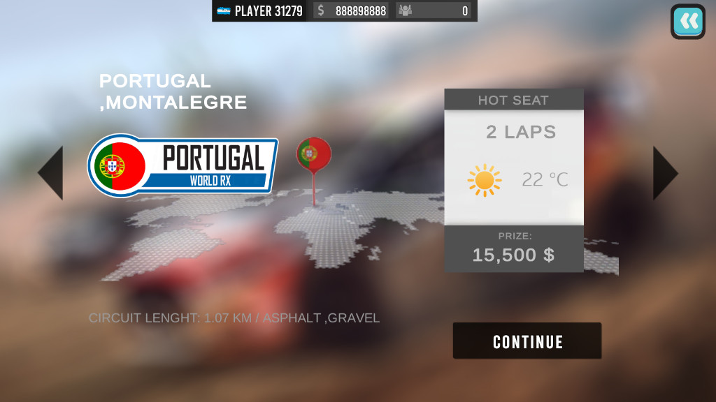 5、完成赛前的车辆改造,确认点击“continue”。