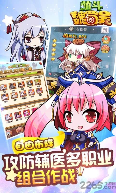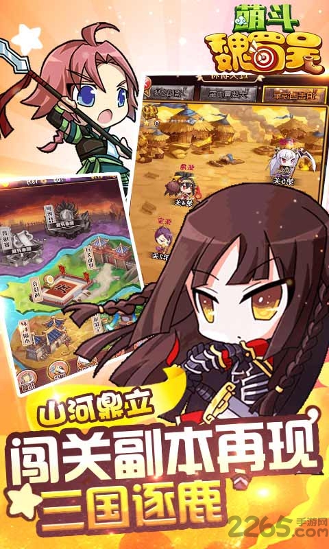萌斗魏蜀吴果盘版是一款三国题材的策略手游,游戏采用经典三国为背景,游戏中玩家将体验到最刺激爽快的策略对决,各种三国元素为你完美还原,玩家在游戏中将体验到和三国武将同屏竞技的超爽快感,带你闯荡热血激情的三国世界,喜欢的朋友来2265安卓网下载吧!
