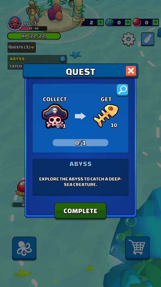 独特的进化系统:随着游戏的深入,你的章鱼将不断进化,解锁新的能力和外观,从一只小小的独臂章鱼成长为强大的海洋霸主。