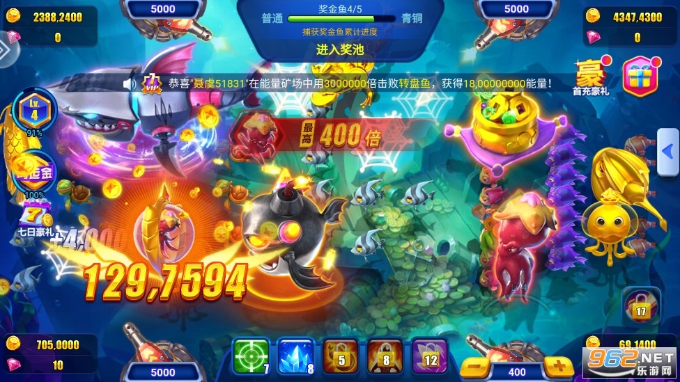 100%完美联网捕鱼,享受真正多人联网一起捕鱼的乐趣!