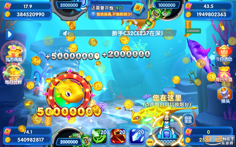 2、震撼特效,炫丽画面,打击感强烈!捕鱼乐趣十足!