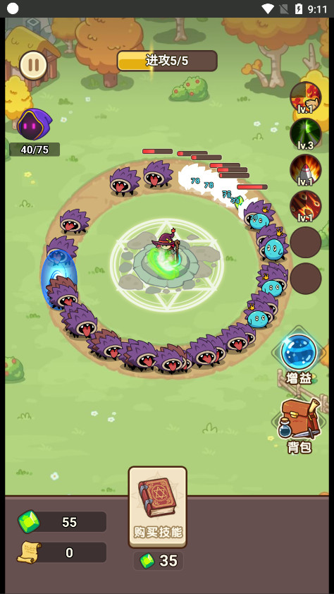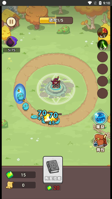 4、根据不同的关卡需求进行策略性布局,积累能量学习技能和购买装备,变得越发强大。