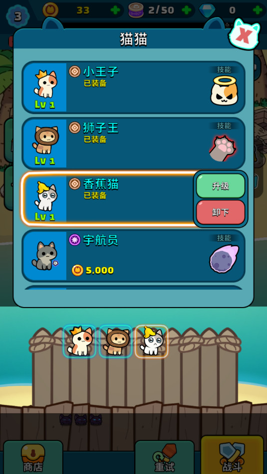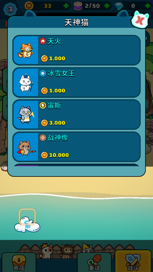 自动战斗机制:无需繁琐的操作,只需简单放置猫咪英雄,即可自动进行战斗。让你在忙碌之余,也能轻松享受塔防的乐趣。