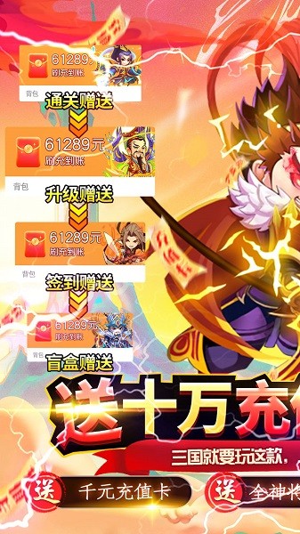 国手级原画师打造高精度三国题材策略卡牌游戏;致敬热血经典三国世界,一级高端影视特效,开局就领全部超神将,游戏每天上线免费领无限神将,十万充值、暴爽画面冲击感,2026年首选三国策略卡牌手游,畅享扣人心弦的极致对战体验,勾起你不羁的三国情怀。游戏最新版强势出击,福利爆炸爽翻天。无限元宝、每天免费赠送大量盲盒,无限资源天天领不停,不怕福利送的多,只怕你领到手软!