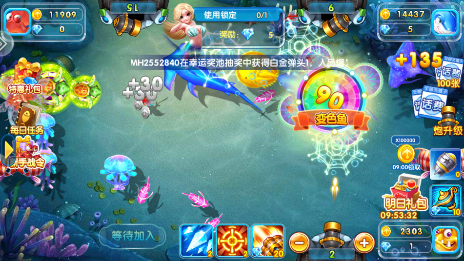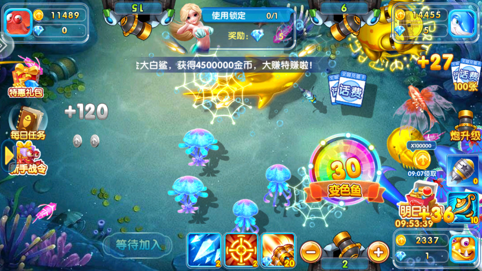 1.强悍捕鱼道具随时拥有,加大火力,让大小鱼群无处可逃。