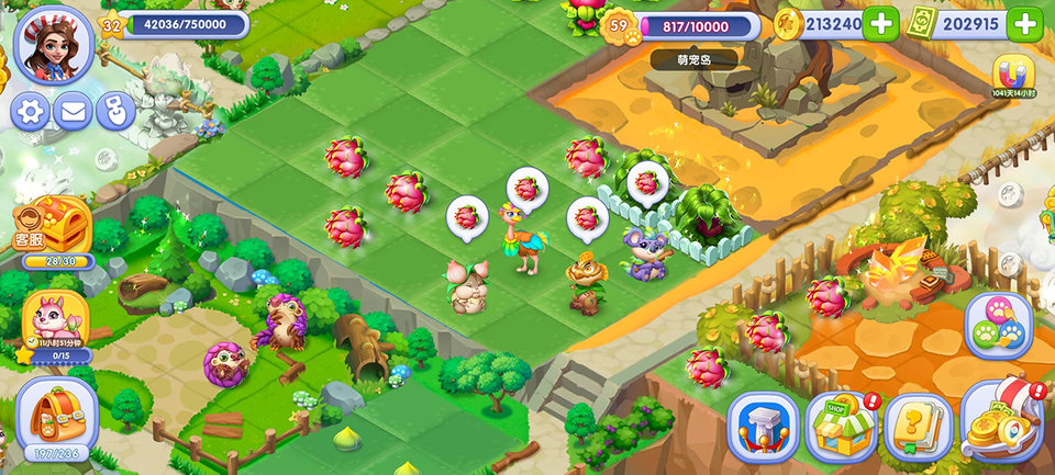 开心合成,一起解锁魔法植物,《开心合成》是一款合并经营休闲类游戏,解锁后会有很多萌萌可爱的精灵会陪伴你一起游戏,收集并解锁更多的精灵世界区域,在你松休闲的同时,玩家在游戏中通过合并初级建筑合成更高级的建筑,带给给你极致的游戏乐趣。