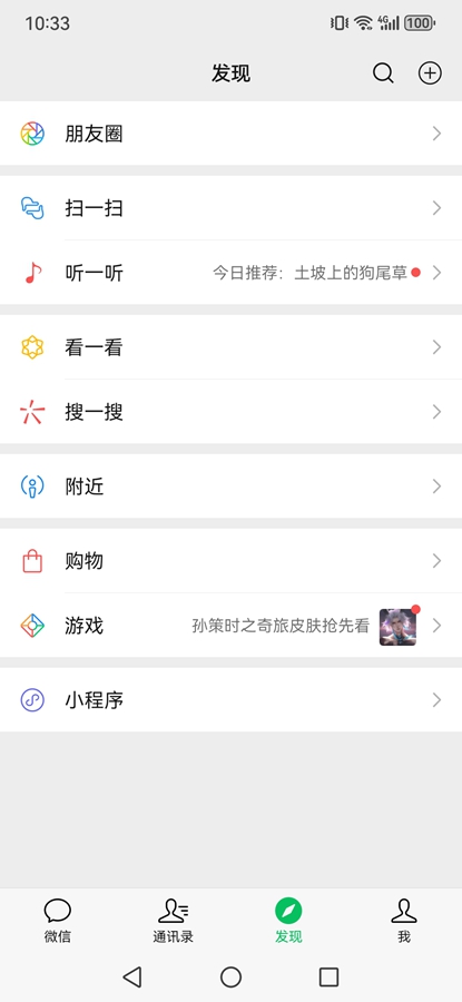 -更多功能:可使用公众号、小程序、视频号、直播、听一听等功能获取内容和服务。