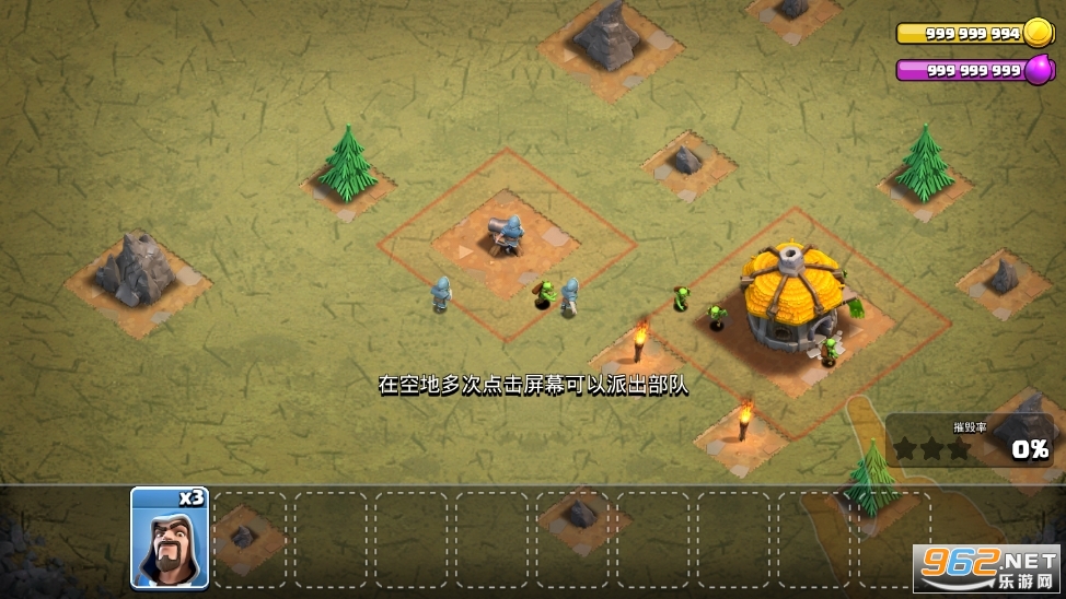 玩家可扮演部落长,从村庄里建造训练营、兵营、城墙等建筑物
