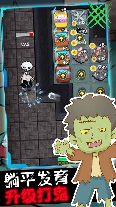 在游戏中,您需要避开幽灵的追击,找到合适的宿舍逃生,通过睡觉涨金币,在房间空地上建造装备,以对抗幽灵的进攻,您可以根据自己的经济条件去商店购买所需要的物件。
