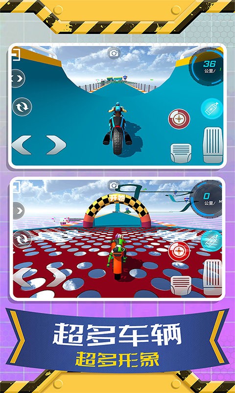 飞车穿越游戏是一款主打摩托飞车玩法的手机游戏。挑战各种奇妙的赛道,体验激情与速度的狂飙,独特的游戏内容体验,感受这别样的魅力内容,你还在等什么呢,赶快来下载试试吧!